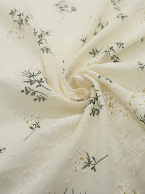 Батист с мушками «Маковое поле» (арт. B0044) - ткань шириной 145 см, 100% хлопок, плотность 95 г/м². Идеален для создания легких нарядов и подкладок. Просвечивает, драпируется в прямые складки, требует дублирования.