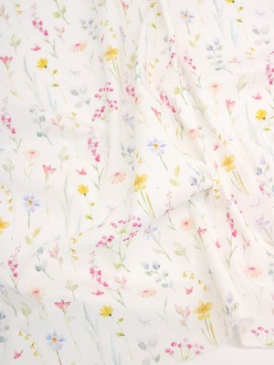 Батист Диджитал «Акварельные мечты» (арт. B0122) - ткань шириной 147 см, 100% хлопок, плотность 90 г/м². Подходит для платьев, юбок и топов. Практически не просвечивает, драпируется в прямые складки, гладкая благодаря напечатанному принту.