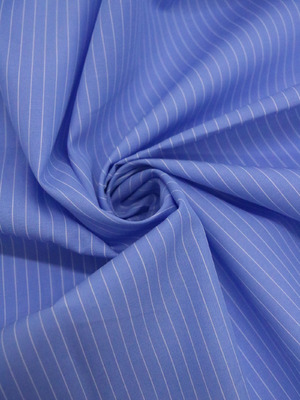 Сорочечный хлопок «Белые и бежевые полосы на голубом» - ткань с узором в полоску шириной 145 см и плотностью 70 г/м². Состав ткани: хлопок 85% + полиэстер 15%. Сорочечный хлопок хорошо держит форму, прост в шитье и уходе. Из ткани шьют рубашки, блузки, пижамы, платья.