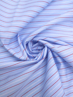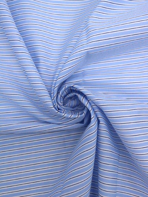 Сорочечный хлопок белые и бежевые полосы на голубом (арт. HL0008) – голубая ткань с полосками, шириной 145 см и плотностью 160 г/м.пог. Состав: 85% хлопок, 15% полиэстер. Прекрасно подходит для пошива блузок и рубашек, получая восторженные отзывы за стиль и мягкость.