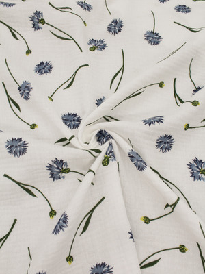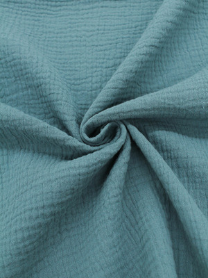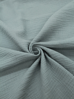 Муслин двухслойный «Мятно-голубой» - легкая однотонная ткань из 100% хлопка шириной 140 см и плотностью 120 г/м². Ткань имеет жатый эффект, очень мягкая и воздушная. Из этой ткани шьют рубашки, блузки, платья, туники, юбки и брюки, пижамы, домашнюю и другую одежду для детей и взрослых.