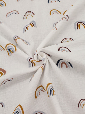 Муслин двухслойный «Милые зайки» - легкая ткань с принтом из 100% хлопка шириной 142 см и плотностью 110 г/м². Из этой ткани шьют рубашки, блузки, платья, туники, юбки и брюки, пижамы, домашнюю и другую одежду для детей и взрослых.