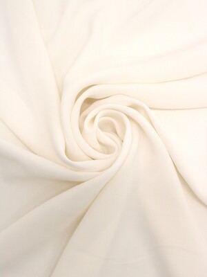 Фактура появляется благодаря креповому кручению нитей и особой термообработке: волокна получают характерную «зернистость», а ткань — пластичность и красивую посадку в складках. Креп-шифон неэластичный (не тянется), хорошо ложится в мягкие волны, подходит для многослойности, воланов и драпировок. Материал двусторонний: лицевая и изнаночная стороны выглядят почти одинаково, что удобно для прозрачных деталей, шарфов и изделий без подкладки на отдельных участках.